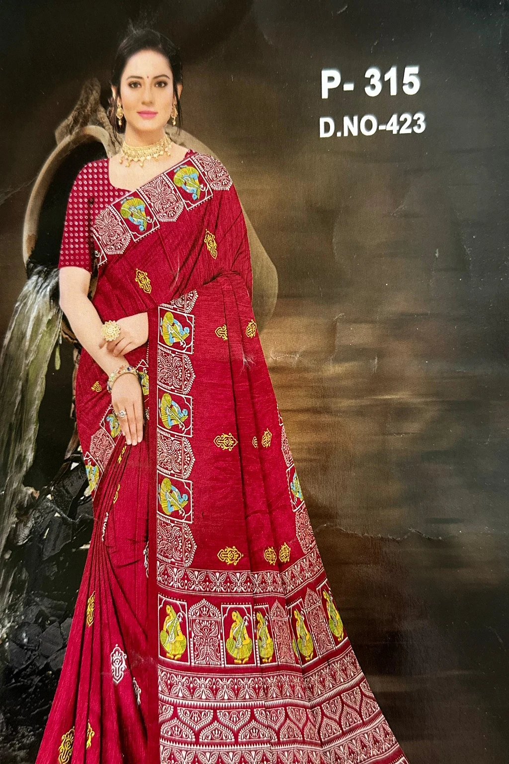 Maroon Bhagalpuri Silk Saree | P- 5775